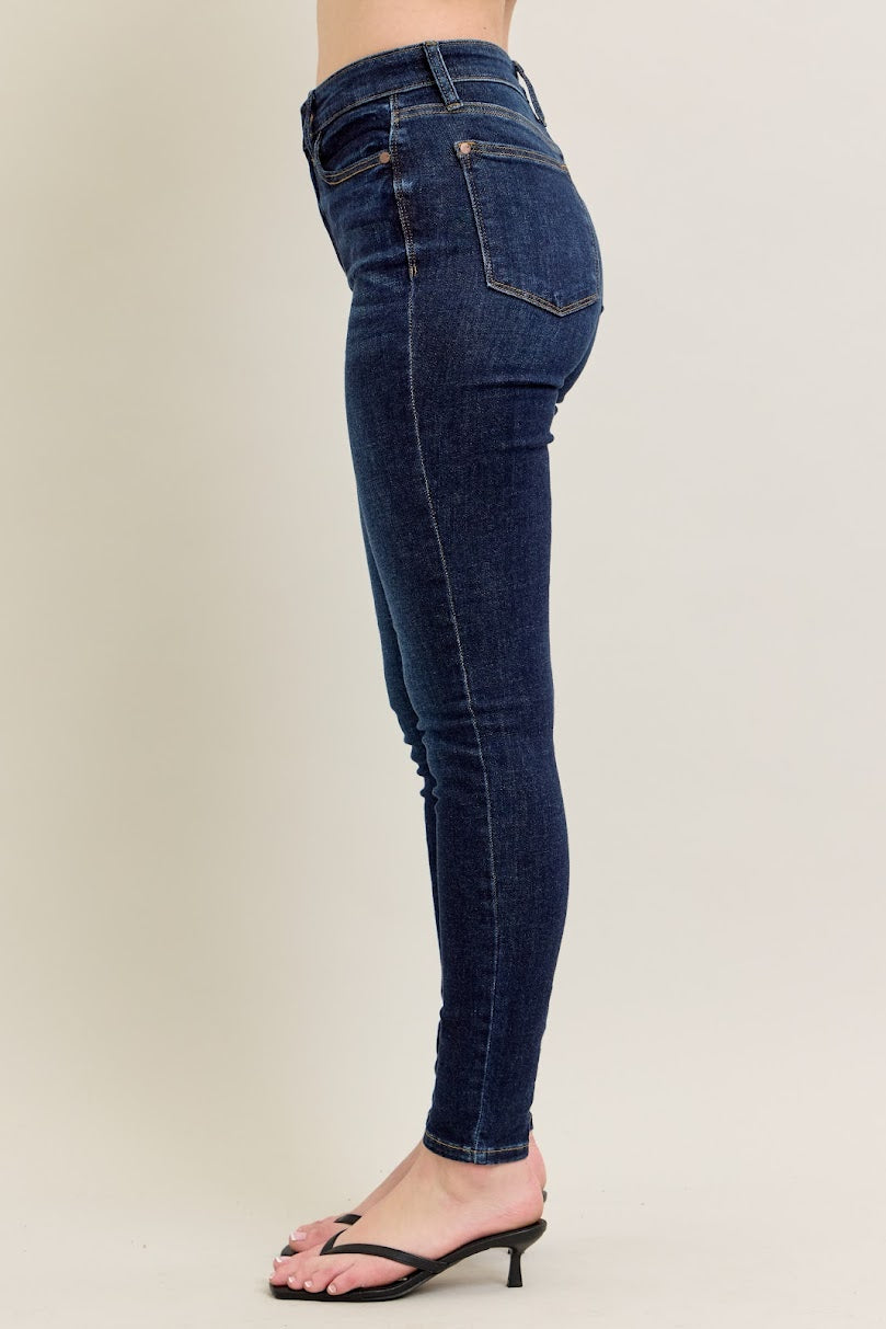 Core mid-rise skinny jeans by Judy Blue bring a playful edge to your denim collection. Featuring hand sanding for unique shading, each pair offers a one-of-a-kind look that stands out from the crowd. The skinny fit hugs your legs comfortably while the medium denim washes perfectly for everyday wear. These jeans blend casual cool with a touch of attitude, making them your go-to choice for effortless style no matter where your day takes you.