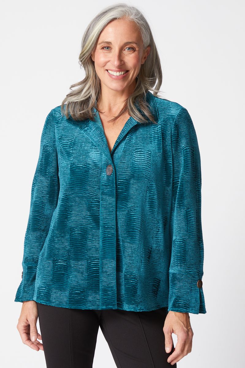 Elevate your wardrobe with the MJ Velvet Shirt in a rich Juniper hue. This playful long sleeve shirt features a soft crinkle velvet texture that feels as luxurious as it looks. The hidden placket keeps your buttons sleek and subtle, while the hi-low hem adds a fun twist for effortless style. Perfect for layering or wearing solo, it brings a touch of cozy charm to any outfit with a wink of sophistication.