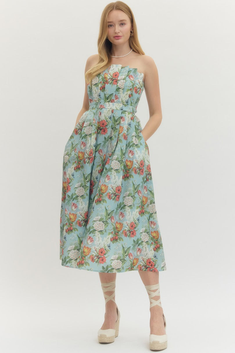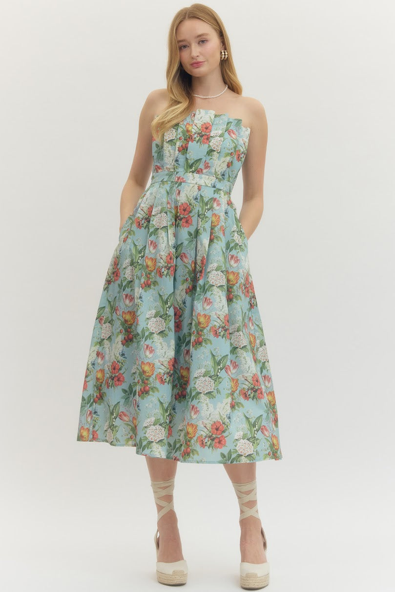 Chatham Dress - Turquoise Botanical