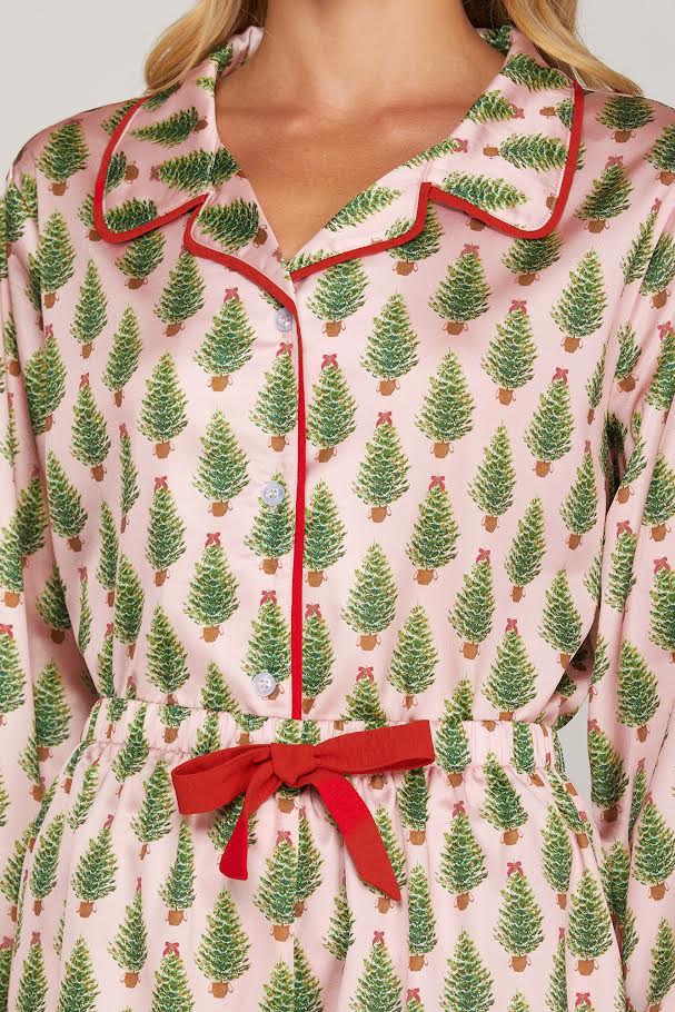 Snuggle up in festive style with our Pajama Short Set in Rose! This cheerful two-piece set features a charming woven Christmas tree print that brings holiday cheer to bedtime. The long sleeve button-down top pairs perfectly with matching shorts, giving you cozy comfort from shoulders to toes. Whether you're lounging on Christmas Eve or enjoying lazy holiday mornings, this playful set keeps you warm and wonderfully merry. The soft, breathable fabric makes it ideal for year-round wear, while the classic print adds a touch of seasonal joy to your sleepwear collection. Perfect for holiday gatherings, gift-giving, or treating yourself to something special!